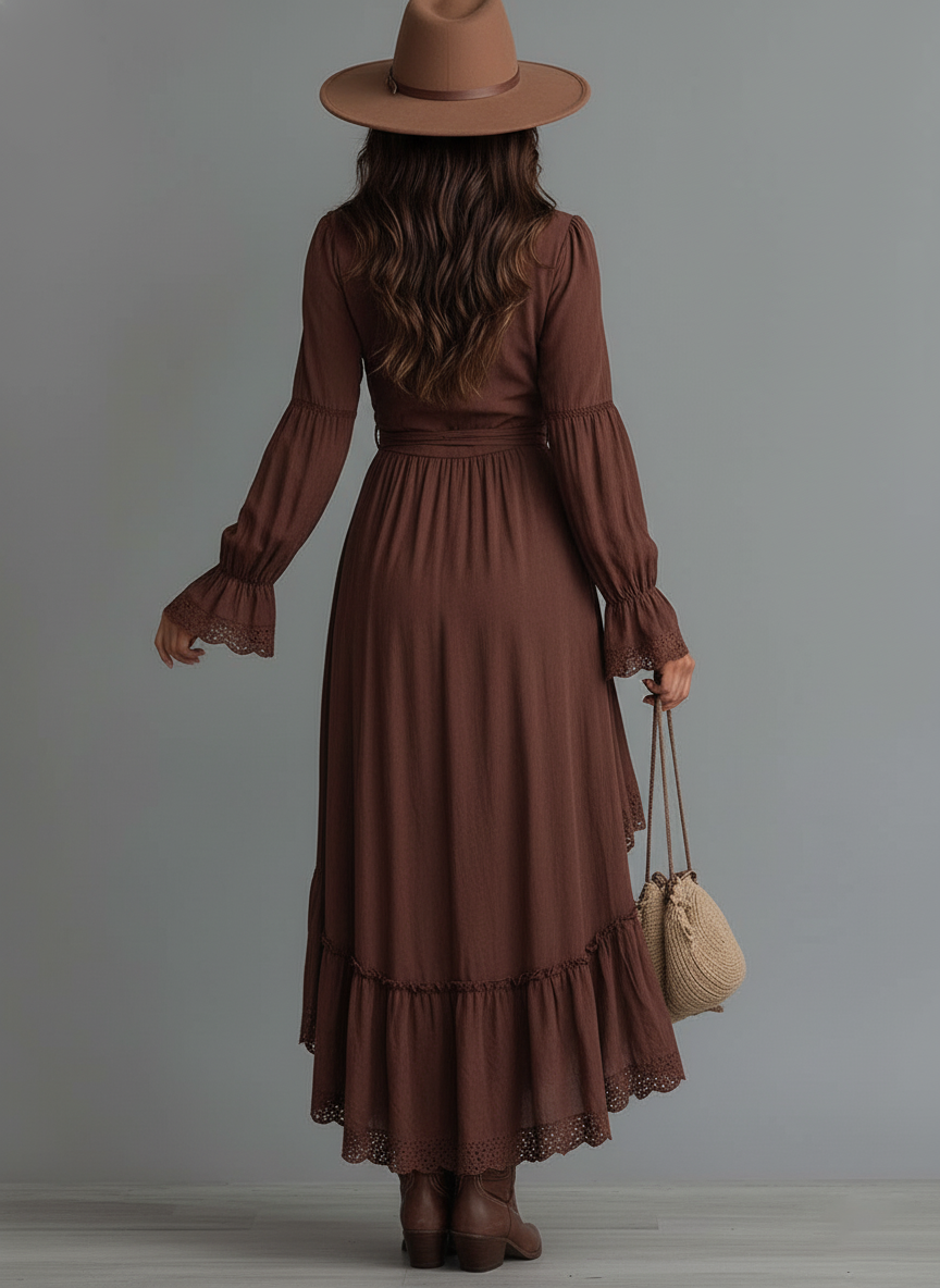 Embrace the perfect blend of retro charm and modern style with this Irregular Hem Lace Trim Denim Midi Dress. Its versatile design makes it an essential piece that can be dressed up or down, offering limitless styling possibilities for the fashion-forward individual.