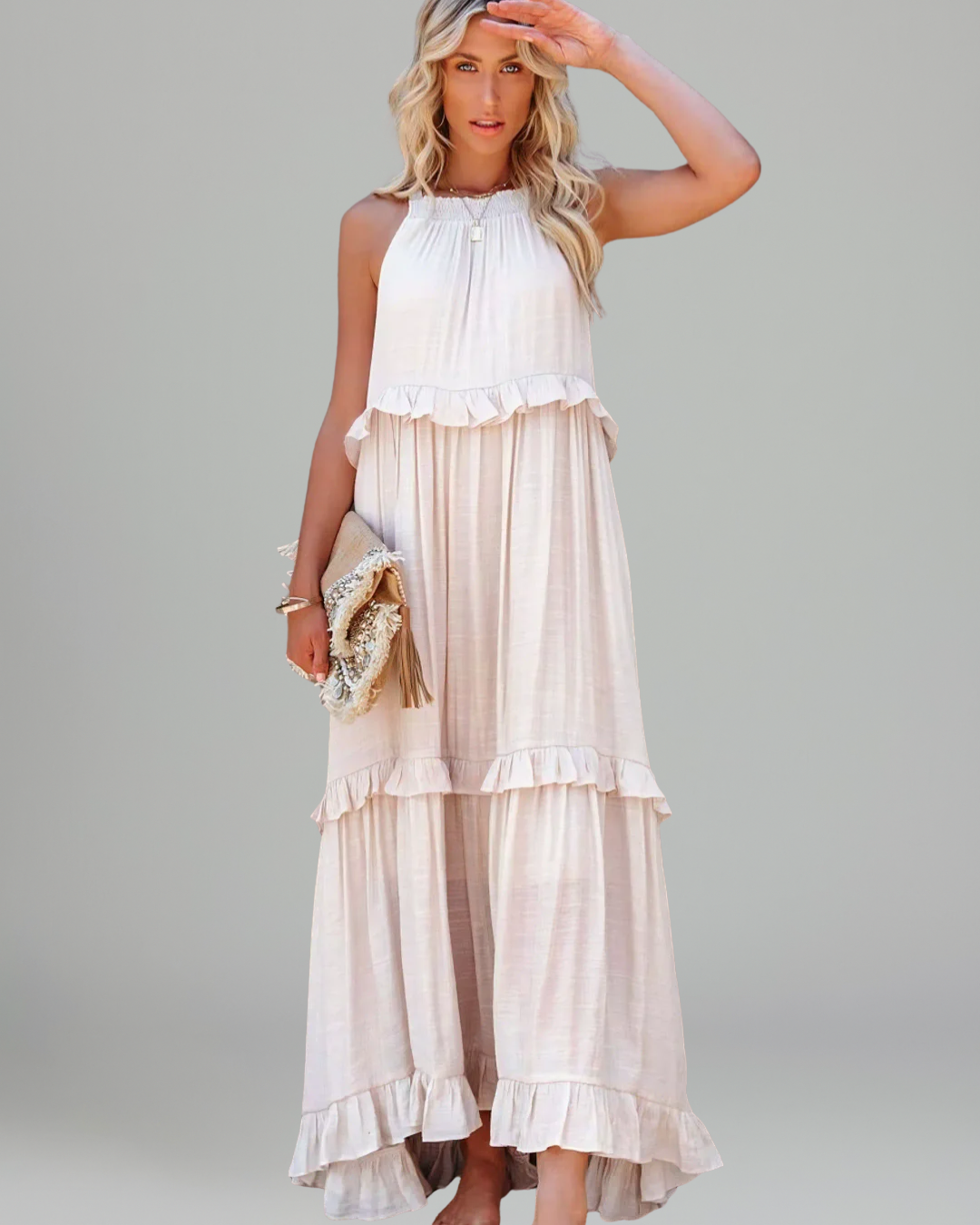 This dress exudes relaxed luxury, perfect for a day at the beach, a holiday evening, or a summer celebration in the garden, without wearing anything restrictive.